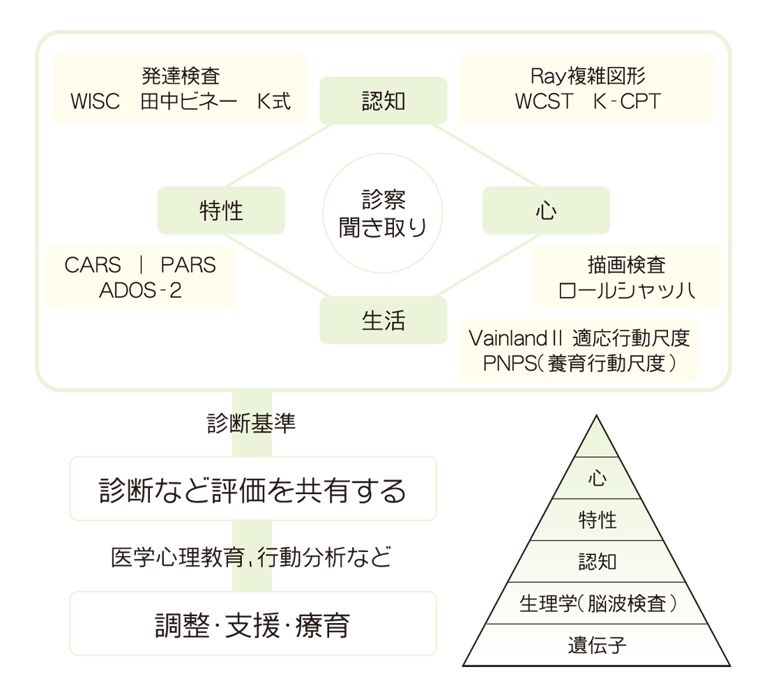 さまざまな発達検査を組み合わせ評価します。